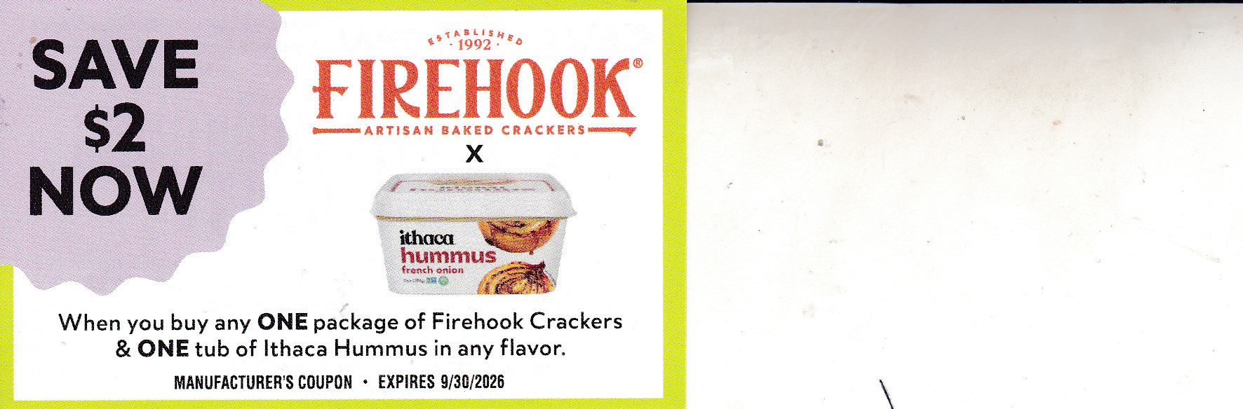 Firehook Crackers + Ichaca Hummus 9/30/26