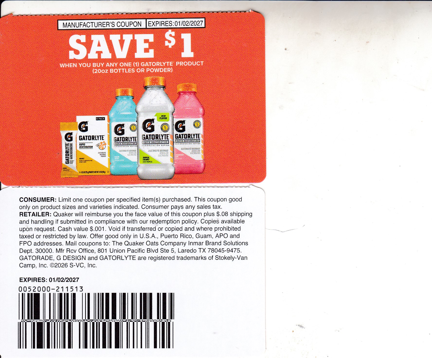 GatoradeLyte any (1) 1/2/27 quantity