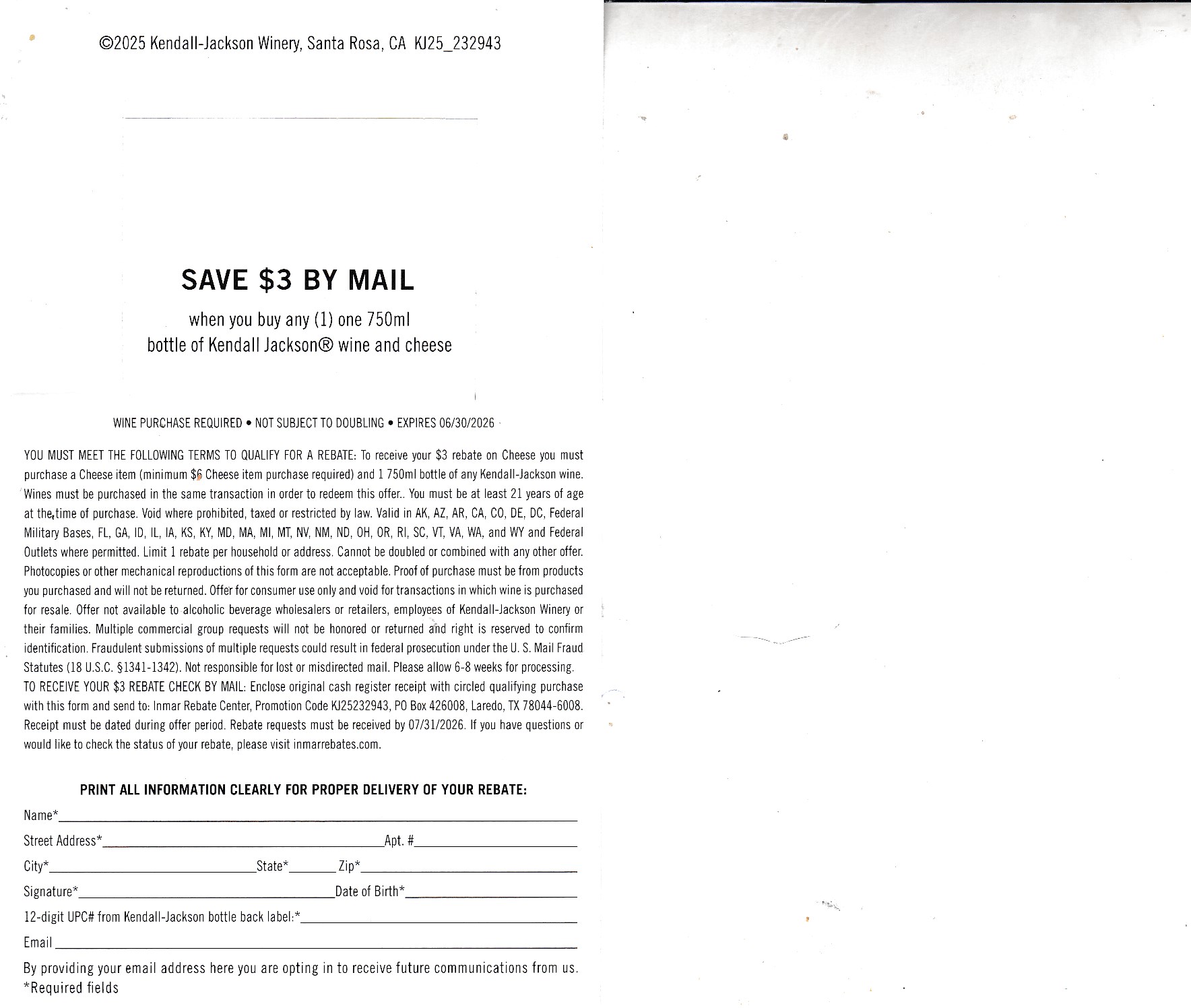 RefundNow > Products > New Kendall-Jackson + any Cheese see states CA + rec by 7/31/26 Laredo TX $3