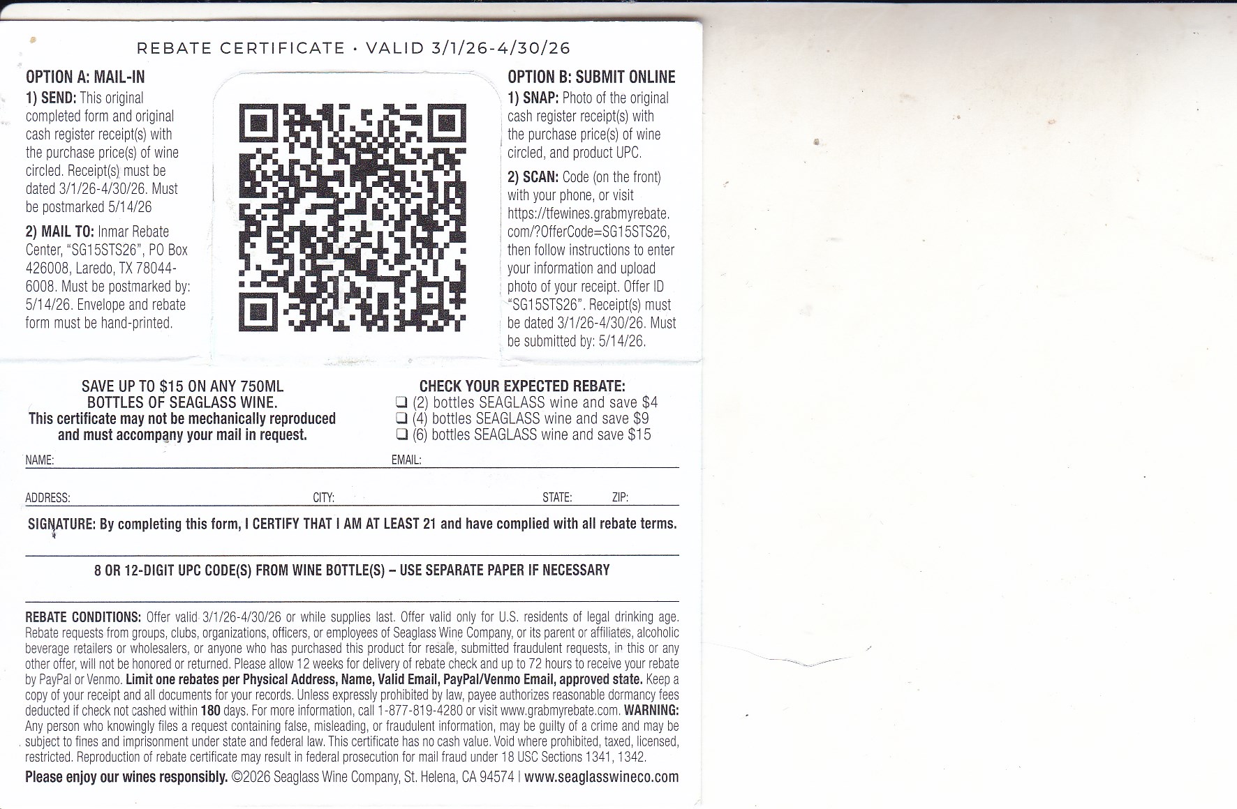 Chateau Ste Michelle crt 1/1-4/30/26 rec’d 5/15/26 $24