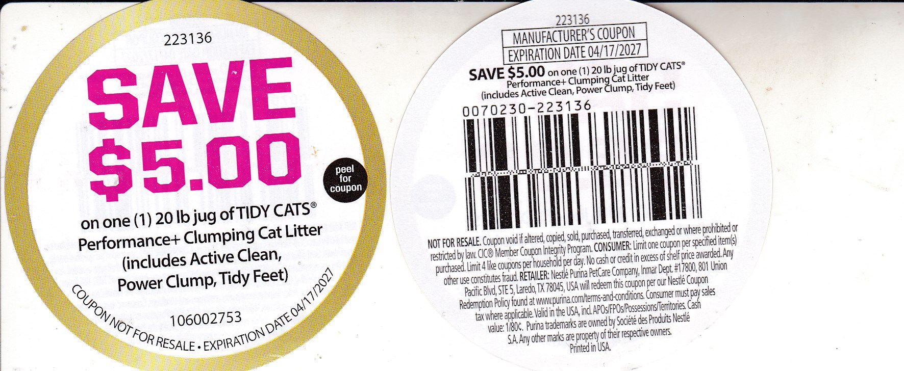 RefundNow > Products > Tidy Cat Performance Clumping 20 lb Litter (1) 4/17/27