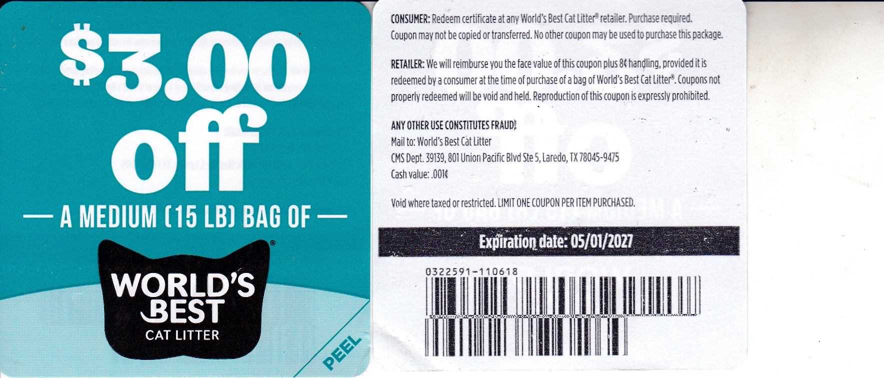 World’s Best Cat Litter 15lb (1) 5/1/27